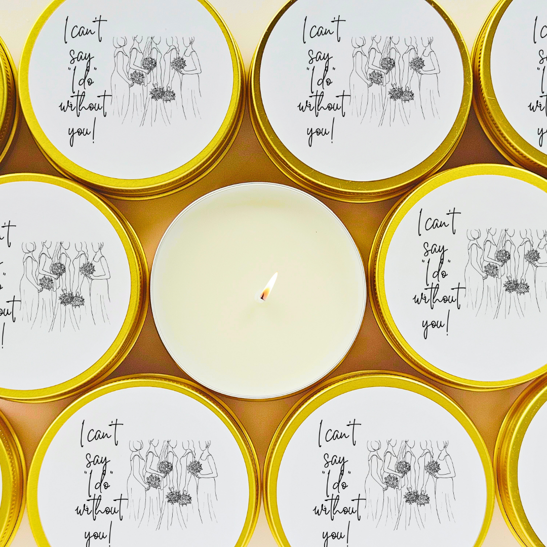 Pop the question in the sweetest way with our elegant 2 oz gold tin candle, featuring a classic white label with a timeless bridesmaid design. Each candle is hand-poured with clean, phthalate-free wax and available in a variety of beautiful scents — from soft florals to cozy, romantic blends. A thoughtful keepsake your bridesmaids will love, perfect for celebrating friendship, love, and the moments leading up to “I do.”